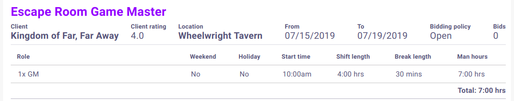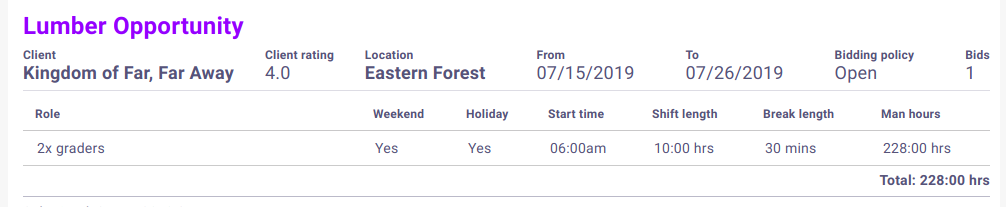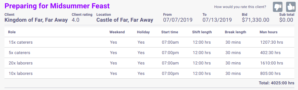 Snow White remembered from the demonstration that she would only be able to see jobs that fit her own agency’s profile. Satisfied that this was in fact the case, she clicked on the job at the top of the list.